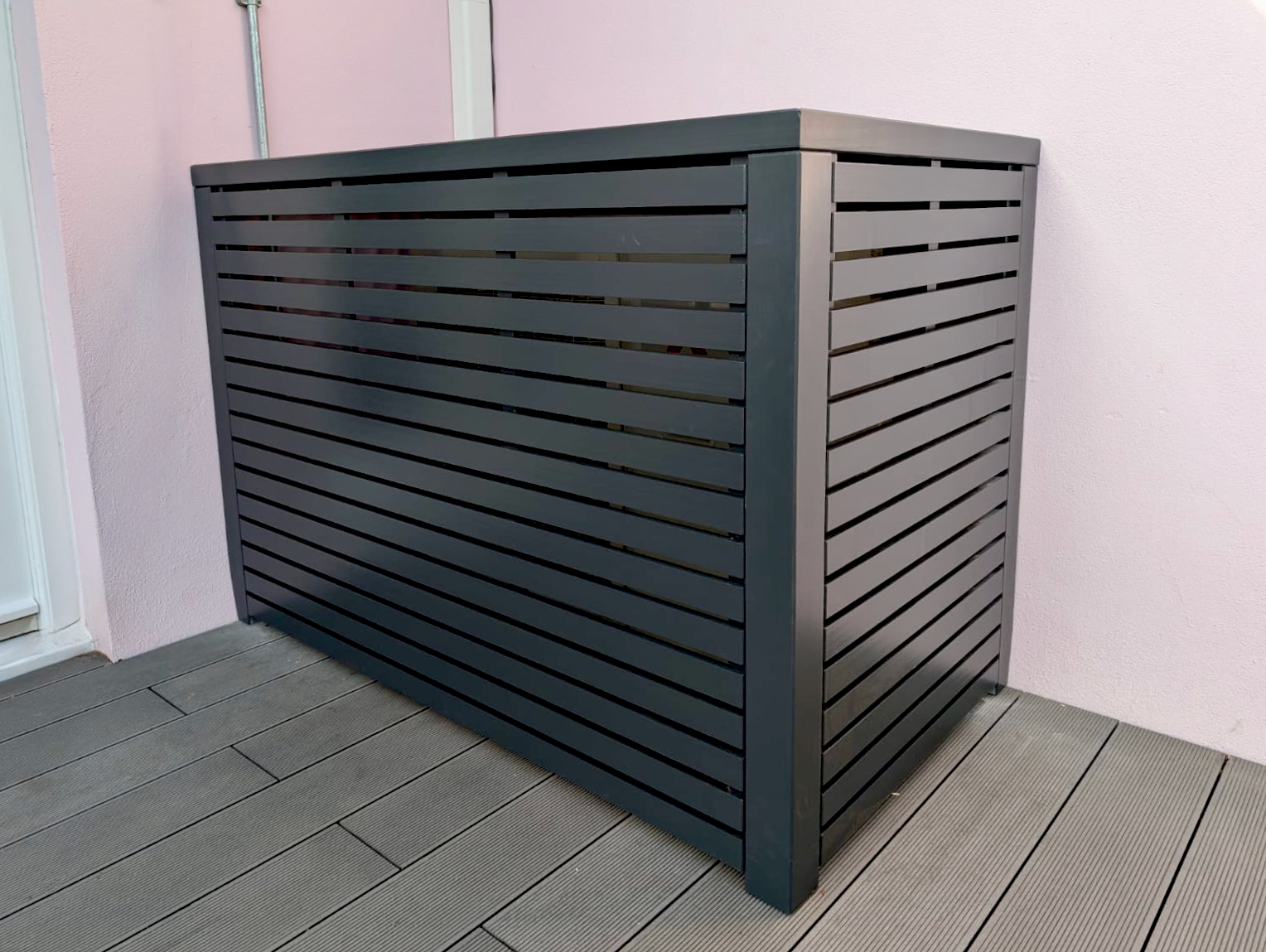 Bespoke slatted air con cover painted in Off Black