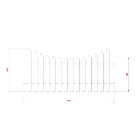 Curved down picket fencing with pointed top. Suitable for all garden boundaries and landscaped areas.